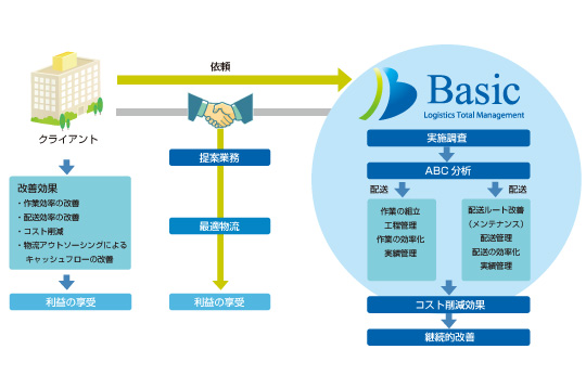 とお考えの企業様のご要望に答えて、弊社ではお客様の現在の物流コストを分析して設備投資を極力省いた最適物流(コスト削減・物流改善)を継続的にご提案させて頂きます。